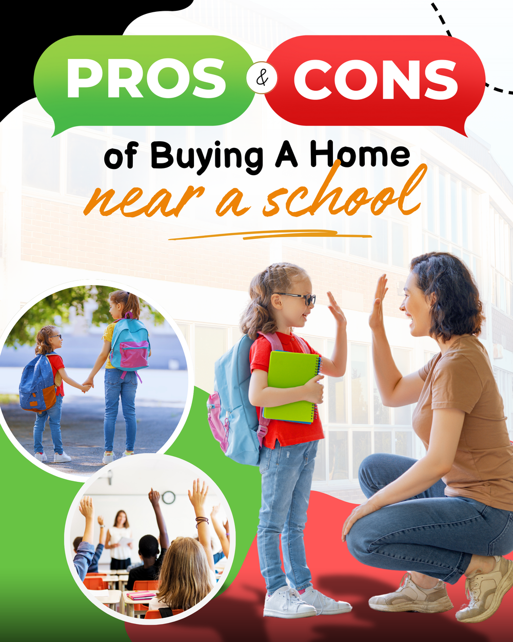 As with any location, living near a school or within a school district has its pros and cons. Can you tolerate the noise levels and prioritize safety for your kids? Will you be okay even if there isn't enough parking space? Do your homework and weigh all of the pros and cons carefully before making your decision.