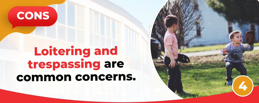 Last but not least, living near a school means you'll see a large volume of children all over the neighborhood, especially during after-school hours. The problem is that some kids might even loiter or trespass on your yard, sometimes unintentionally since they might not yet understand that they should keep off other people’s property.